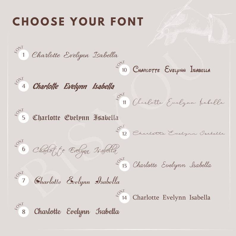 This personalized necklace allows you to choose your own font and names for a custom piece ‹please leave the font and initials in the ordering comments ›. Please allow 3-4 weeks for creation. Due to its personalization, exchanges or refunds are not available.