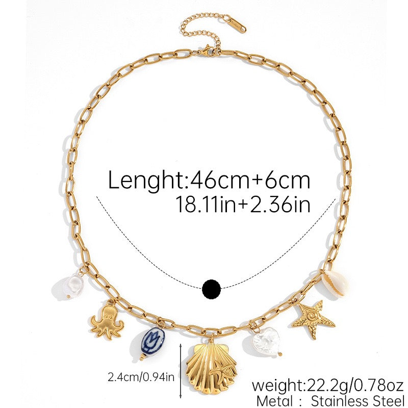 Blue shell octopus charm necklace