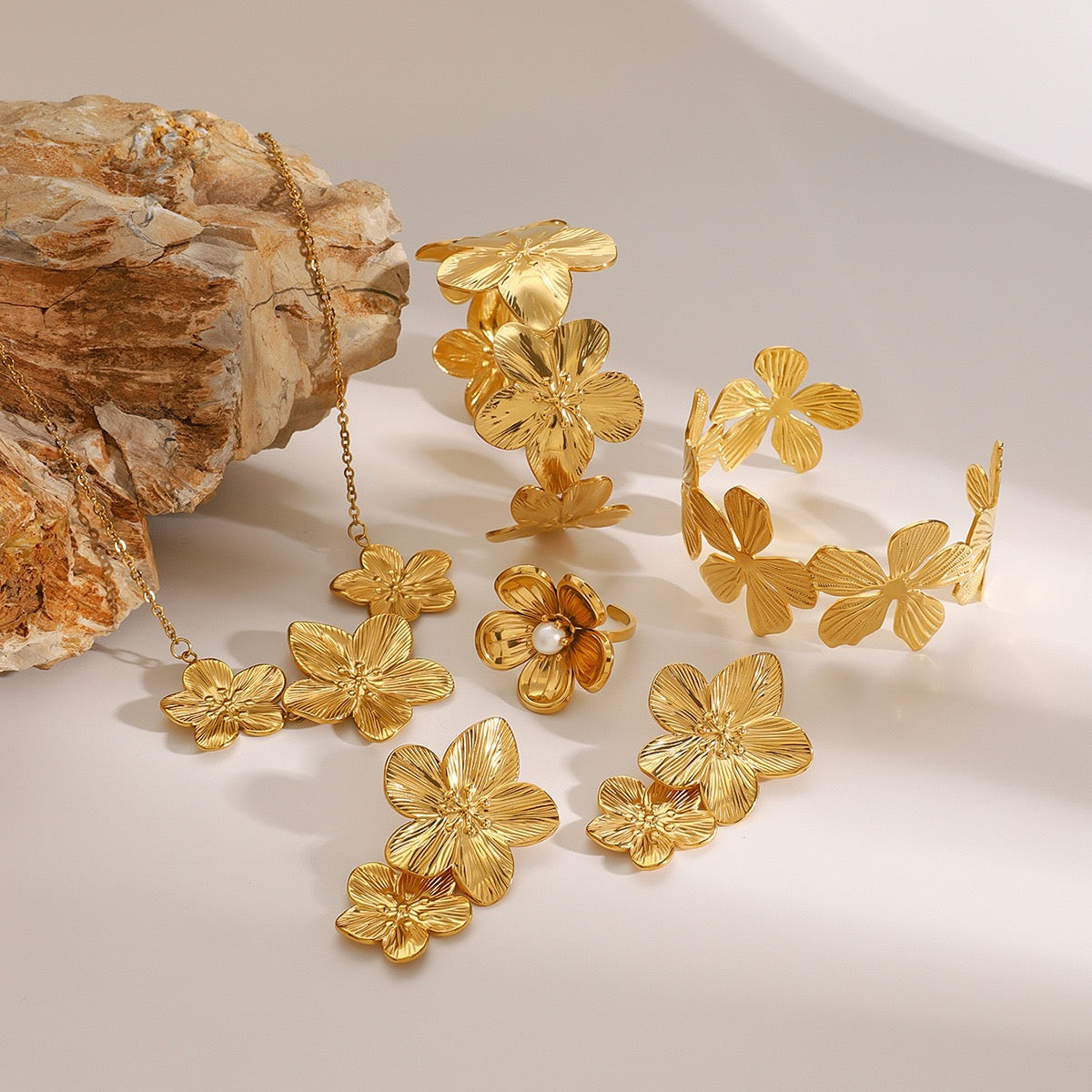 Discover the beauty and luxury of our jewelleries, crafted with high-quality materials such as 18ct gold plated stainless steel and nickel-free sterling silver. Enjoy the allergy-free and durable design, perfect for making a statement while prioritizing quality and comfort.