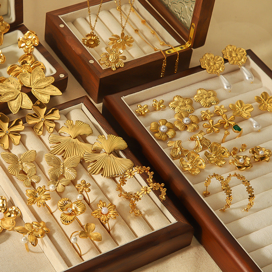 Discover the beauty and luxury of our jewelleries, crafted with high-quality materials such as 18ct gold plated stainless steel and nickel-free sterling silver. Enjoy the allergy-free and durable design, perfect for making a statement while prioritizing quality and comfort.