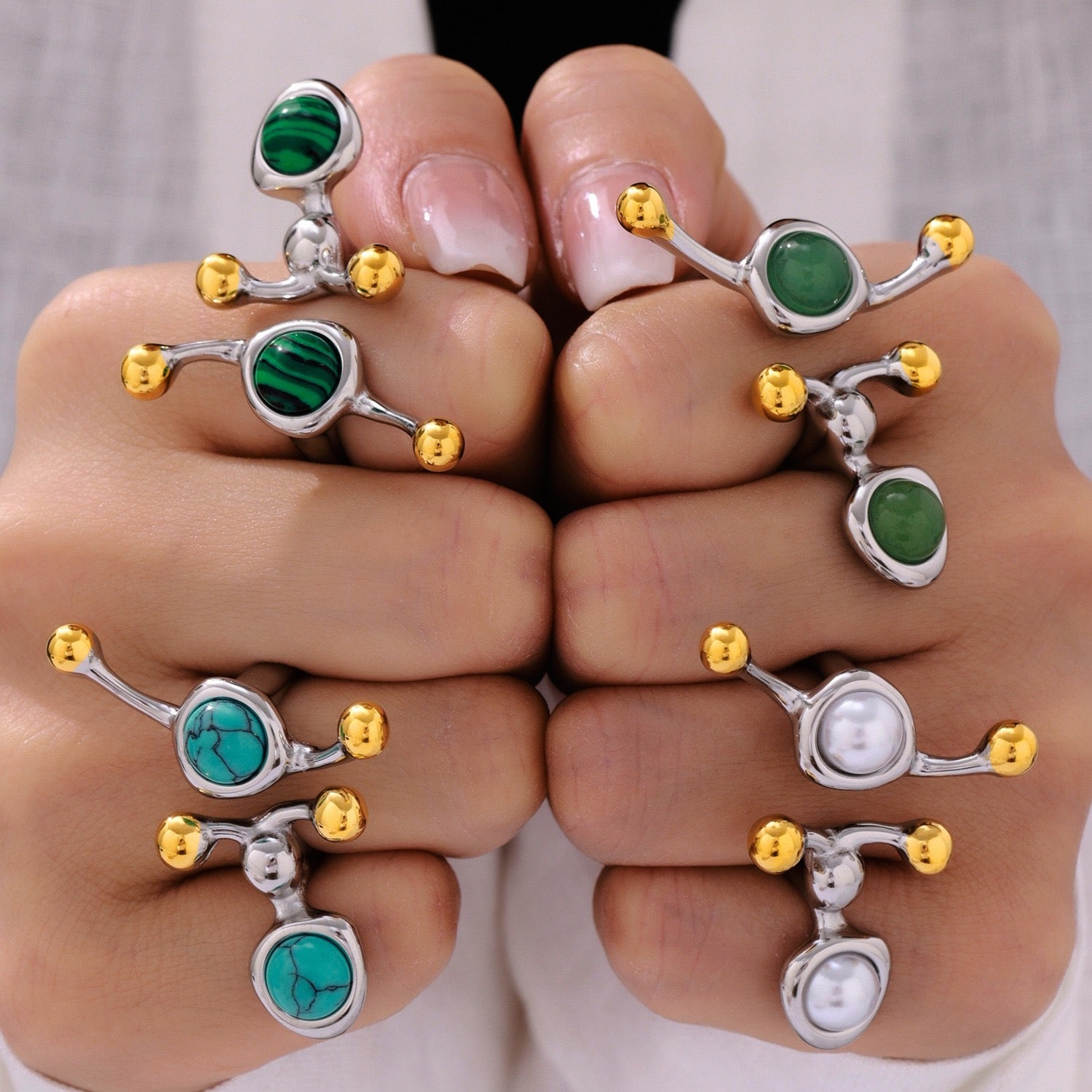 Rings are all size 7 or adjustable if it's open.