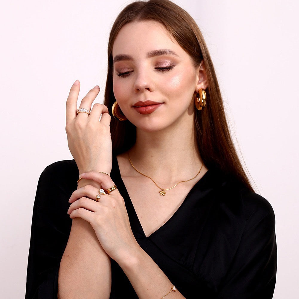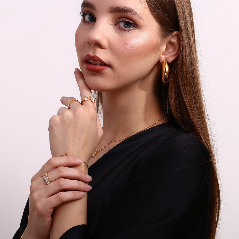Discover the beauty and luxury of our jewelleries, crafted with high-quality materials such as 18ct gold plated stainless steel and nickel-free sterling silver. Enjoy the allergy-free and durable design, perfect for making a statement while prioritizing quality and comfort.