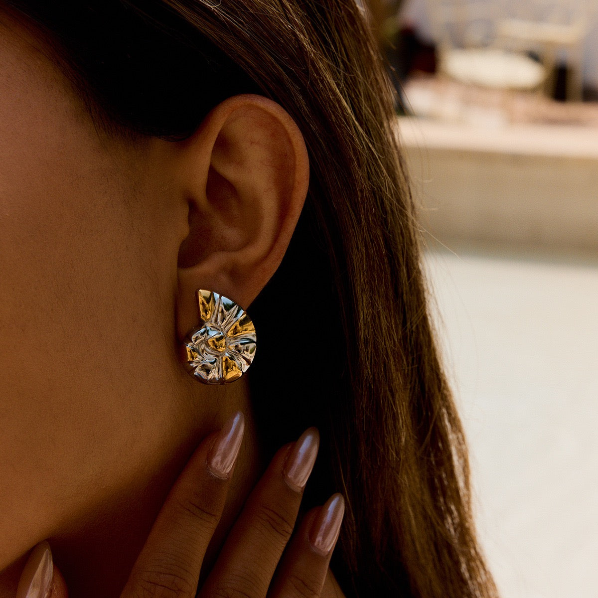 Mix tones swirl shell earrings