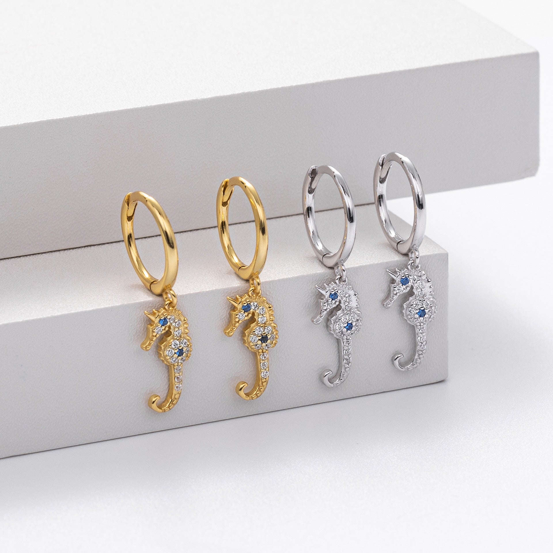 Seahorse sterling silver hoops
