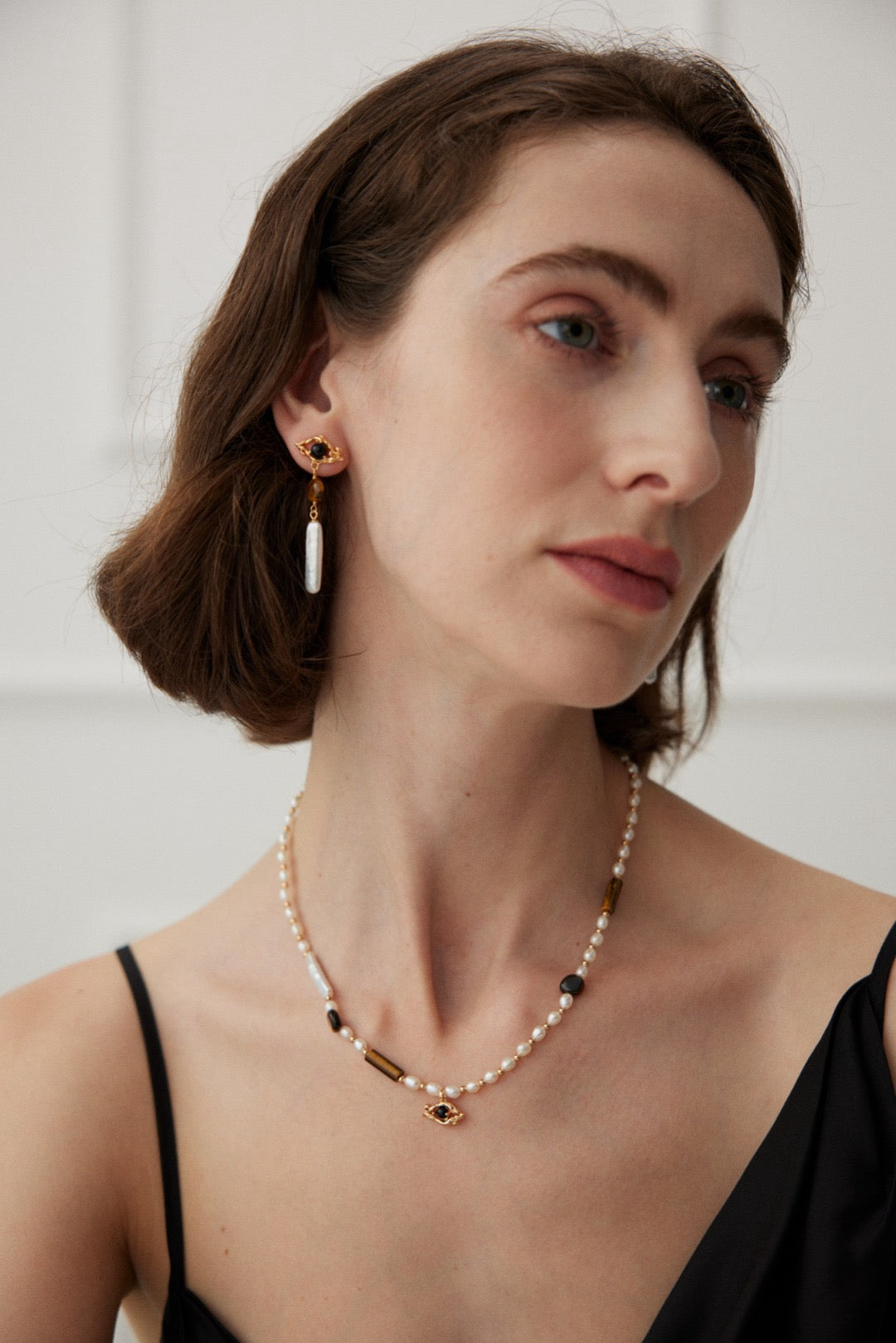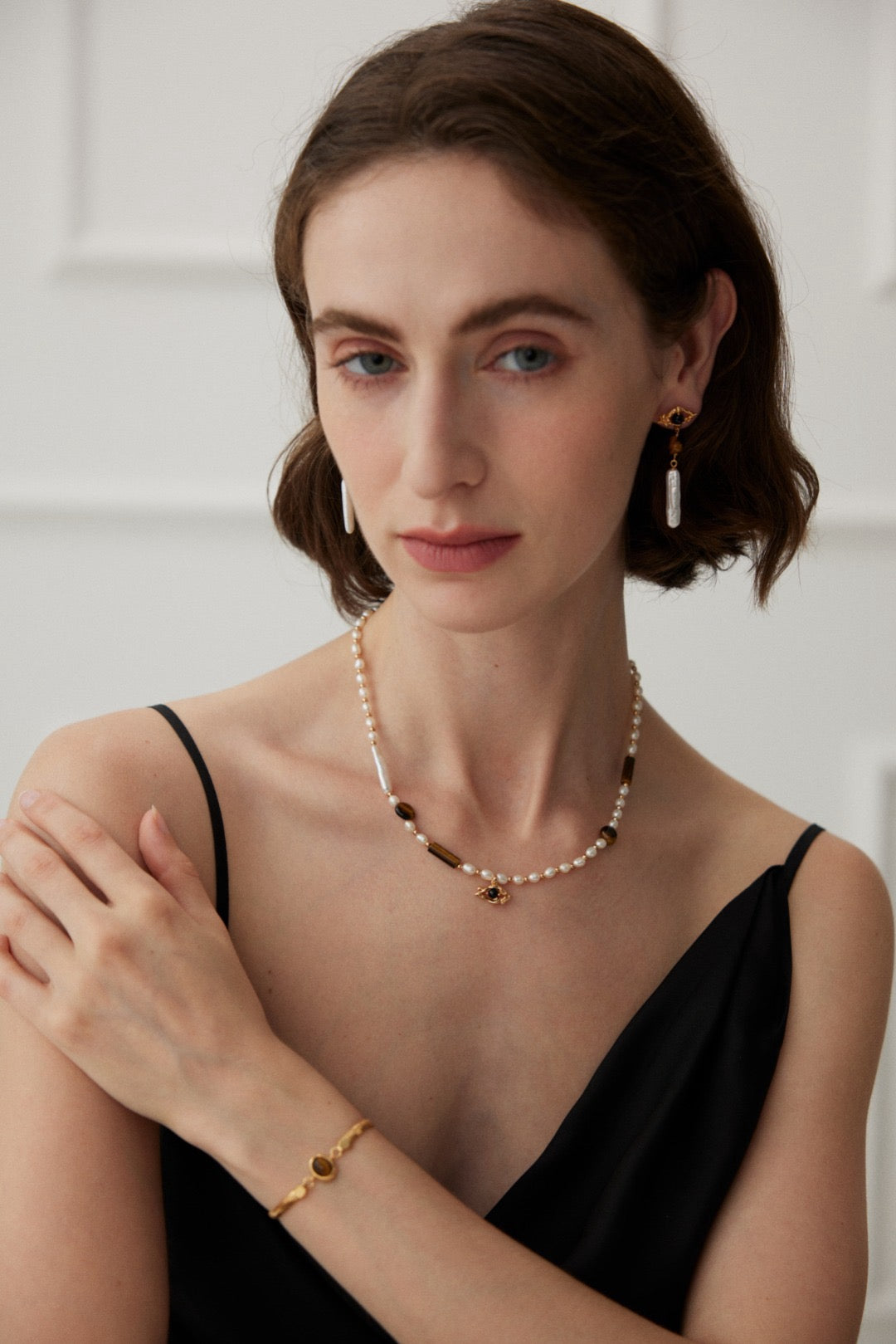 Necklace37+7cm Tiger eye4.5mm Pearl size20×5.2mm