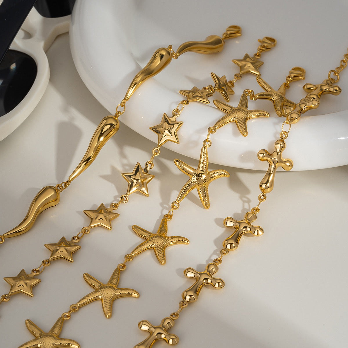 Discover the beauty and luxury of our jewelleries, crafted with high-quality materials such as 18ct gold plated stainless steel and nickel-free sterling silver. Enjoy the allergy-free and durable design, perfect for making a statement while prioritizing quality and comfort.