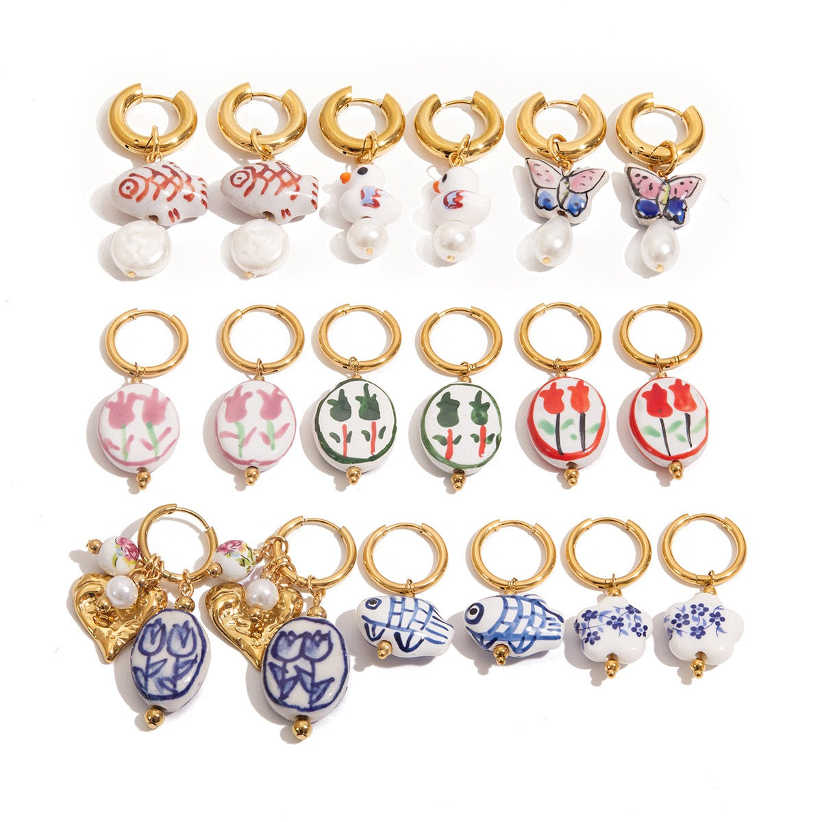 Ceramic blue tulip hoops